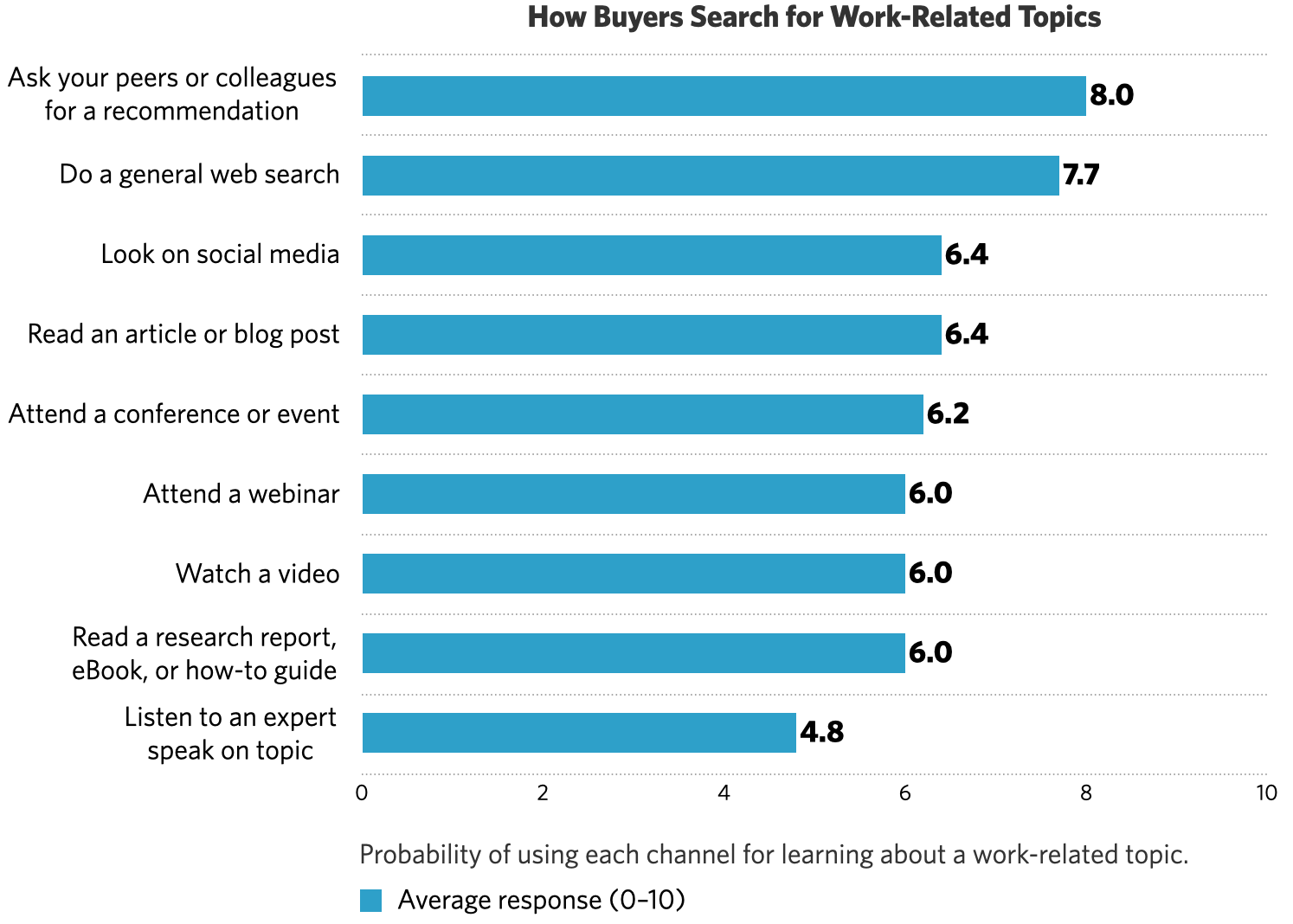 Today, buyers search for solutions online. And when checking out a professional services provider, almost 80% of buyers are searching online and looking at service providers’ websites to get answers to questions (see the figure below). Whether they are ready to purchase now, or some time in the future, they are arming themselves with information and looking for trusted resources. By sharing educational content that addresses their problems, in language that they understand, you can become a trusted resource.